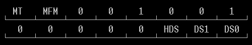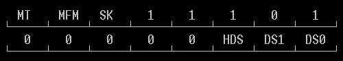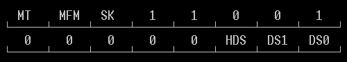 Требуется: C/H/R/N/EOT/GPL/DTL Исполнение: Считывается первый корректный идентификатор сектора (первый - значит первый достигнутый от текущего положения головки, а не первый после физической адресной метки) Результат: ST0/ST1/ST2/C/H/R/N